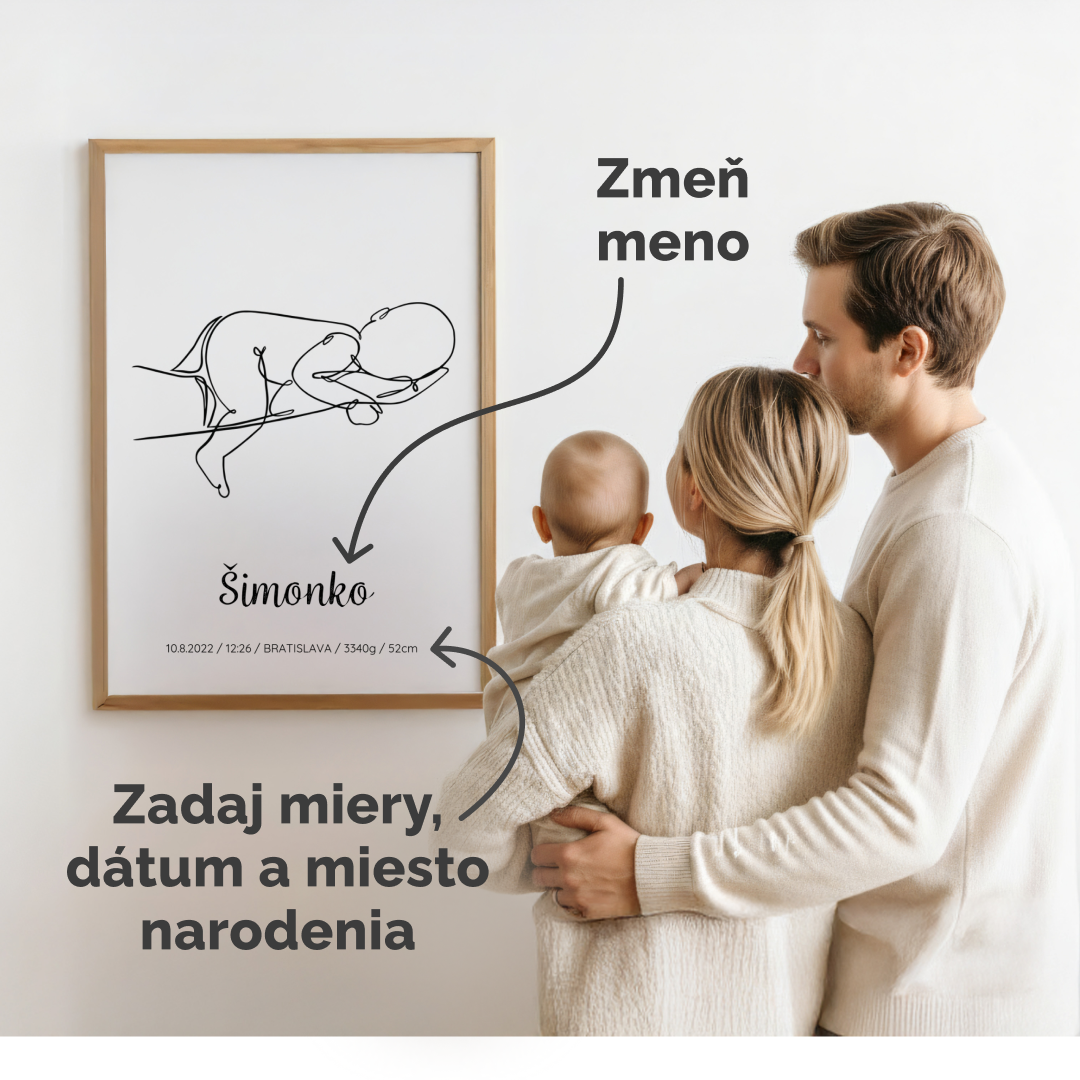 Plagát pre novorodenca s menom a detailmi bábätka – personalizovaná spomienka